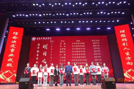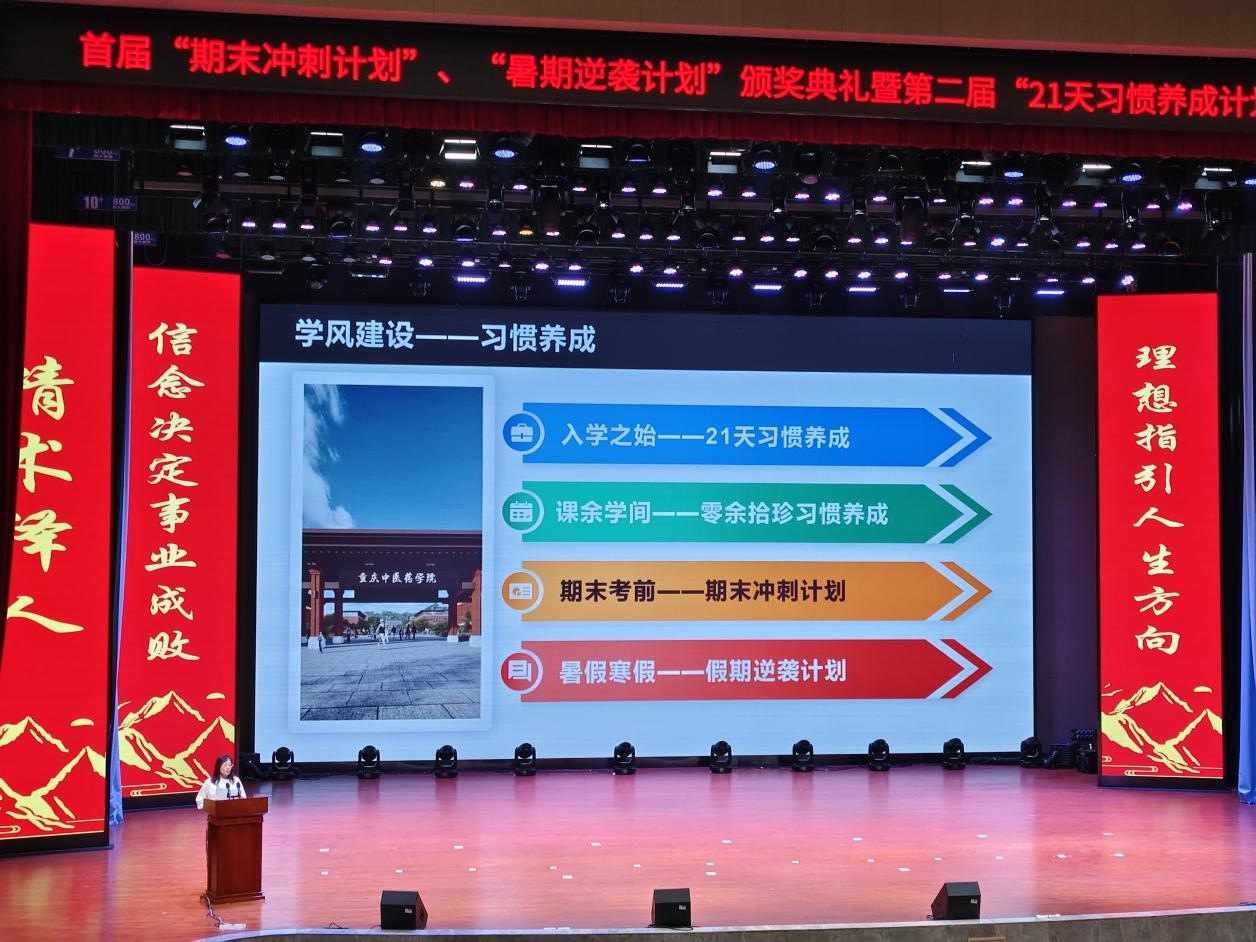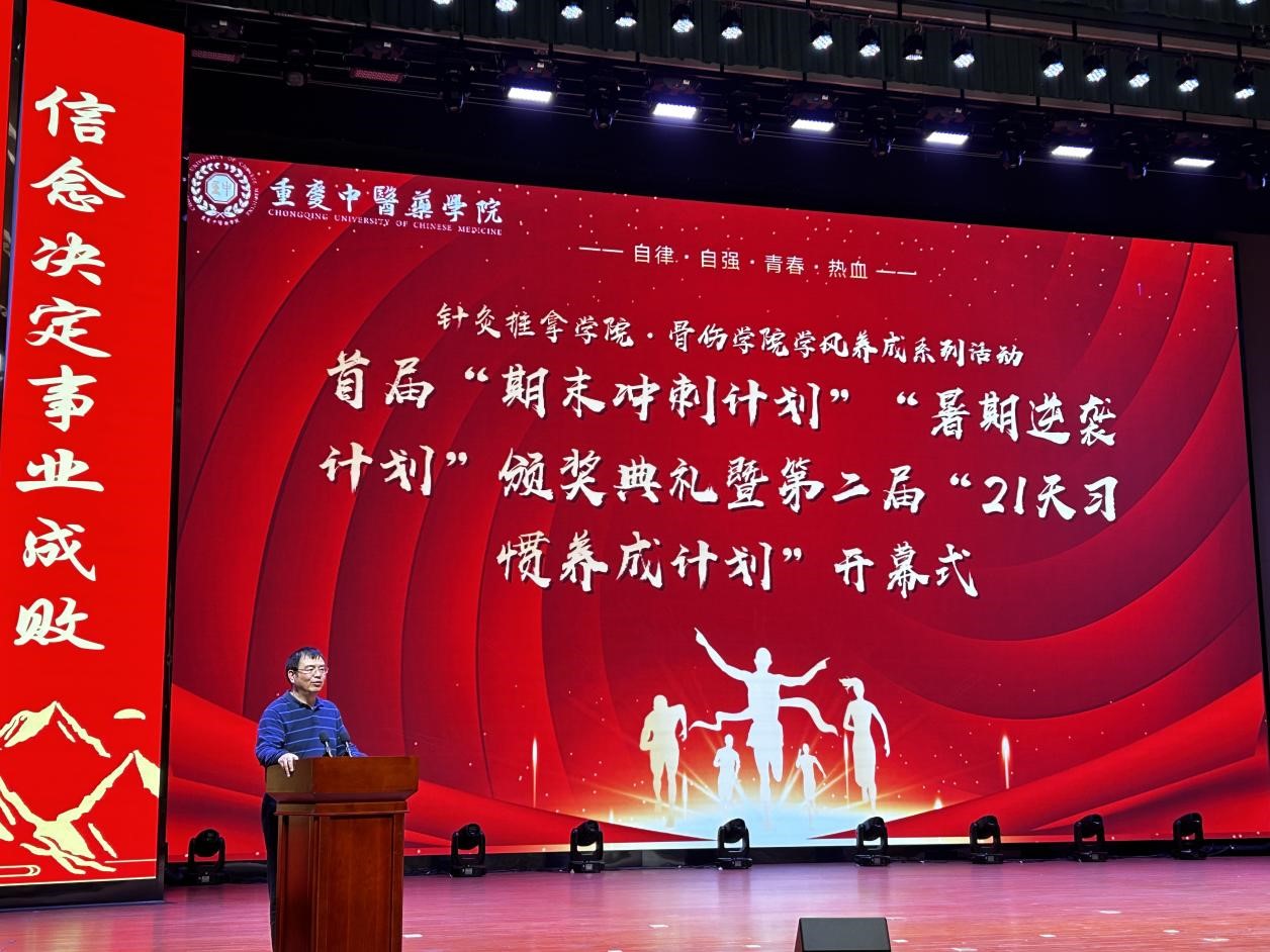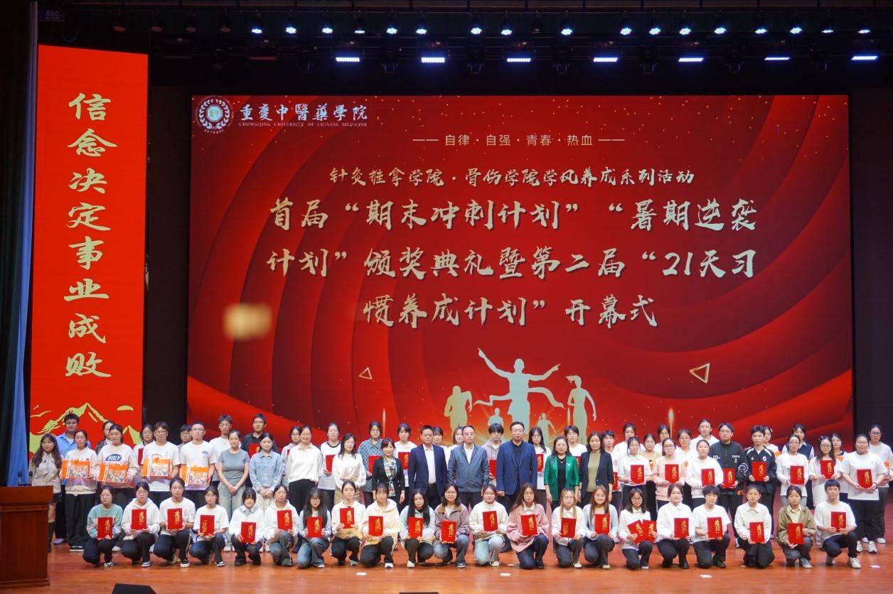 针灸推拿学院、骨伤学院学风养成系列活动之首届“期末冲刺计划”、“暑期逆袭计划”颁奖典礼暨第二届“21天习惯养成计划”开幕式的圆满成功,一方面为同学们树立了榜样模范,另一方面也为同学们提供了一个培养良好习惯的宝贵契机和广阔平台。相信在接下来的21天里,同学们定会积极践行计划,努力养成良好的学习和生活习惯,为自己的未来发展筑牢坚实的基础。