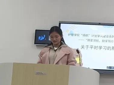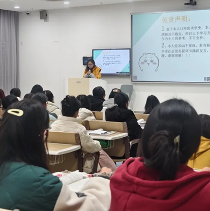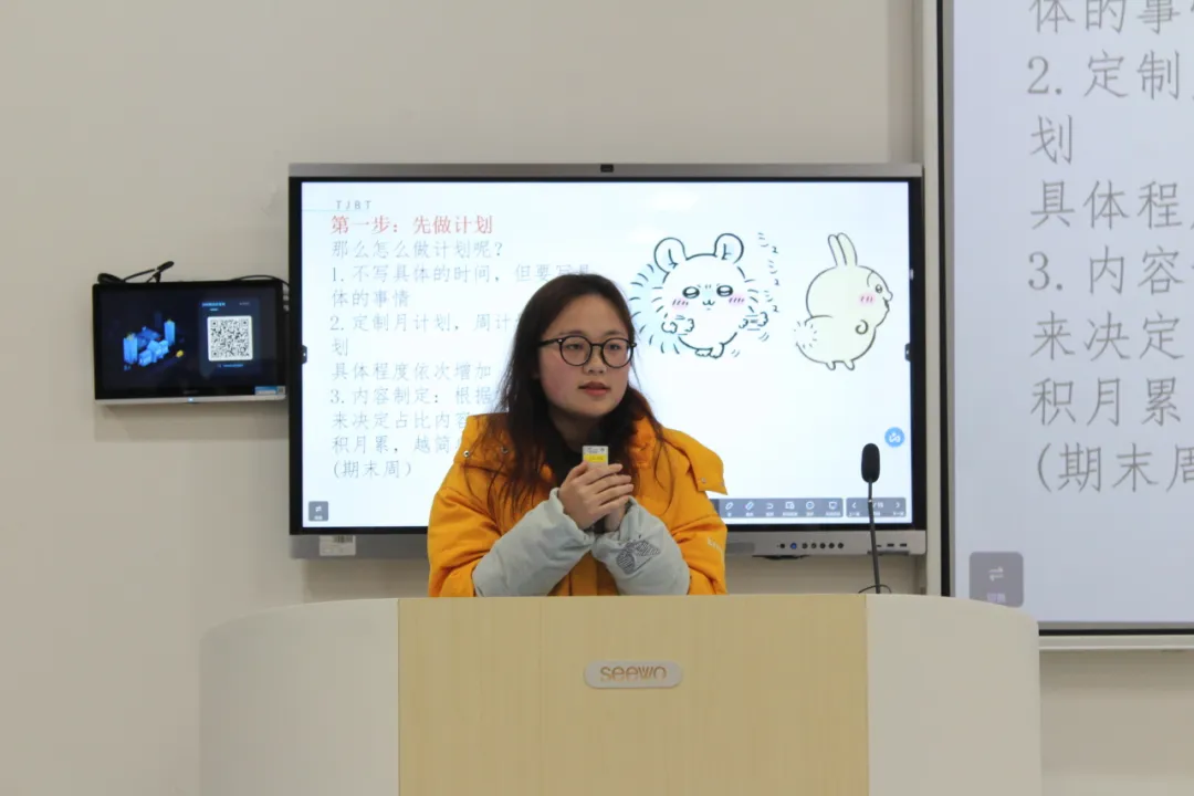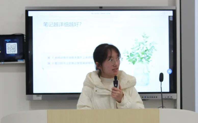 李梦雪同学从课堂笔记、期末复习、时间管理以及大学适应等四个板块展开她的经验分享。