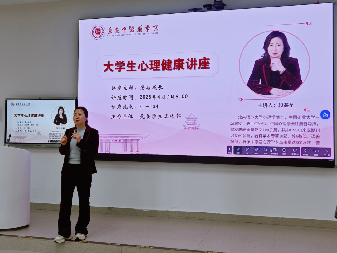 4月7日上午,taptap点点特邀中国矿业大学教授、博士生导师段鑫星,在E1-104学术报告厅作以“爱与成长”为主题的大学生心理健康教育专题讲座。全体辅导员、各二级学院学生代表共100余人参加讲座。