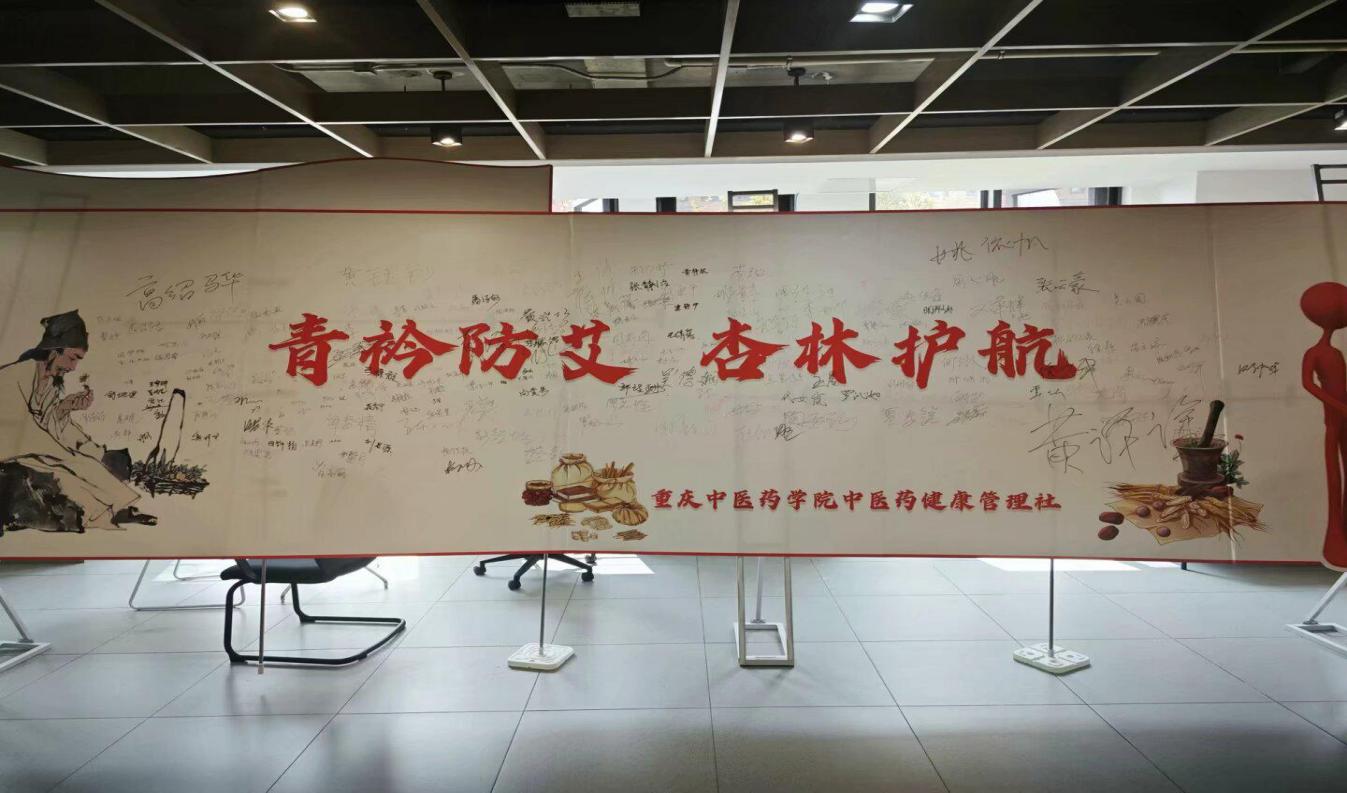 在“青衿防艾,杏林护航”的素白长卷前,同学们纷纷挥毫,有人画上红丝带徽章,有人写下原创防艾三字经,都表达对防艾事业的支持。活动现场气氛热烈,中医药健康管理社累计发放避孕套一千多份、宣传资料一千多份,将防艾知识与防护措施精准传递给同学们。