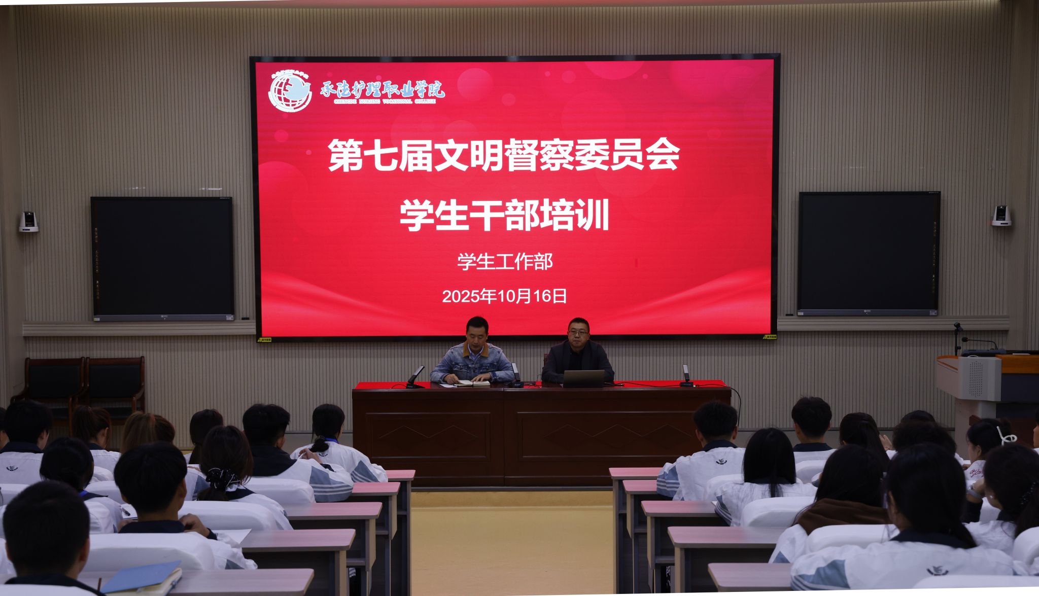 为深化平安校园建设,提升学生干部的综合素养与履职能力,10月16日,学生工作部在1号教学楼一楼报告厅组织召开了第七届文明督察委员会学生干部培训会。学生工作部部长韩国新、负责老师郭继然及全院文明督察委员会学生干部参加。