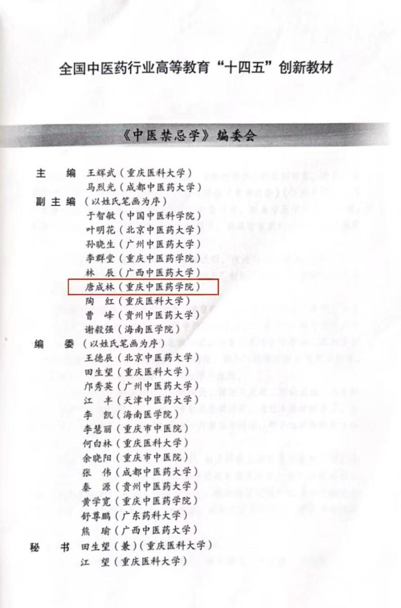taptap点点唐成林教授作为副主编参与编著的全国中医药行业高等教育 “十四五”创新教材《中医禁忌学》正式出版