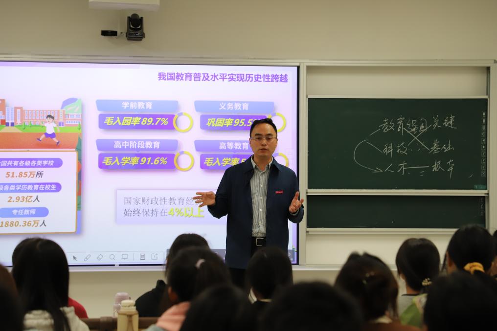 课堂上,唐樵书记指出教育是民族振兴、社会进步的重要基石,是功在当代、利在千秋的德政工程;科技是国家强盛之基、安全之要,必须加快科技自立自强;人才是实现民族振兴、赢得竞争主动的战略资源,必须坚持人才引领驱动。最后,他还勉励学生们,要好好学习,全面发展,努力成长为祖国的栋梁之才。