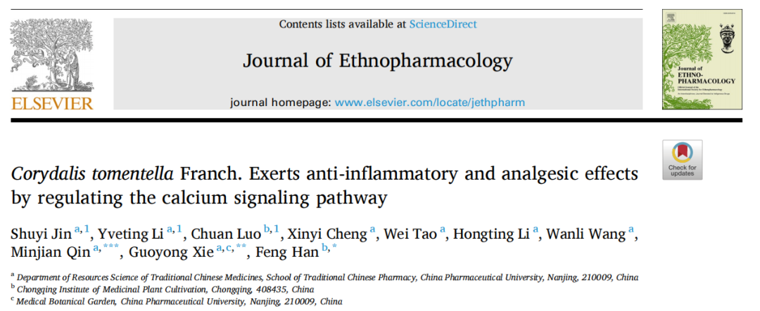 该研究论文在世界民族药顶级期刊Journal of Ethnopharmacology发表。中国药科大学中药学院博士金书屹、硕士李岳庭和重庆市药物种植研究所专家罗川作为论文的共同第一作者,中国药科大学秦民坚教授和谢国勇副教授、重庆市药物种植研究所正高级农艺师韩凤作为论文的共同通讯作者参与撰写。