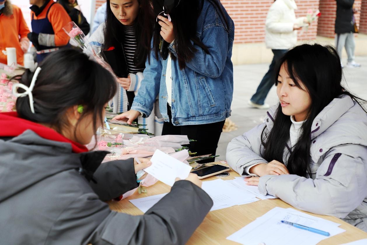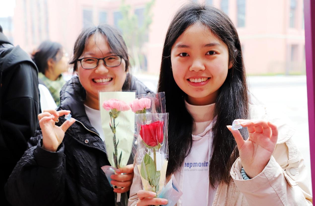答题闯关、抽盲盒、领鲜花......趣味问答活动现场,人头攒动,同学们热情十足。
