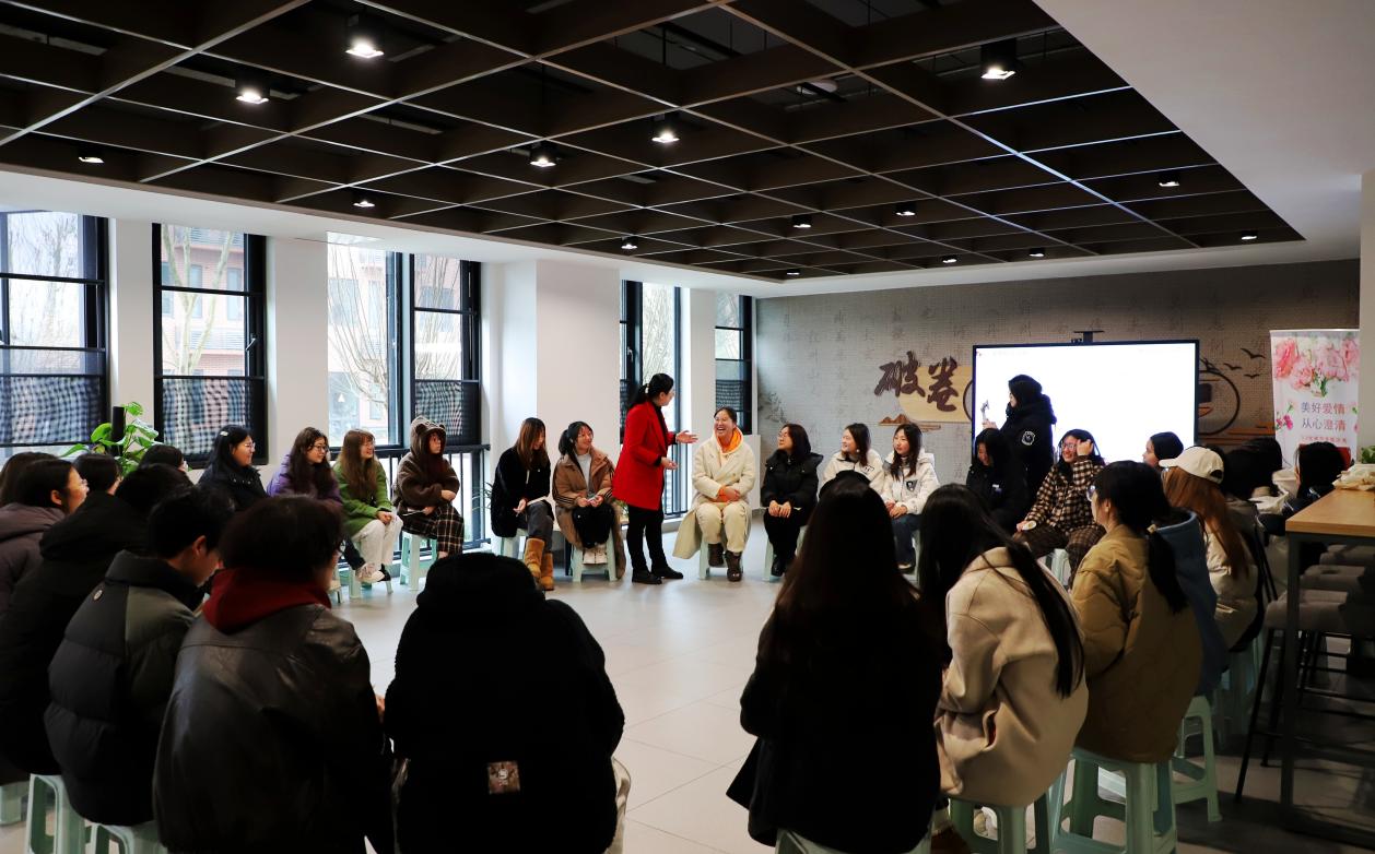关爱女生,培养同学们正确的恋爱观念,在“美好爱情,从心澄清”主题沙龙活动现场,老师和同学们面对面交流对于爱情的见解,学习正确的恋爱观,在引导女生们自尊、自爱、自强的同时,也丰富了同学们的课余生活,使身心得到放松。