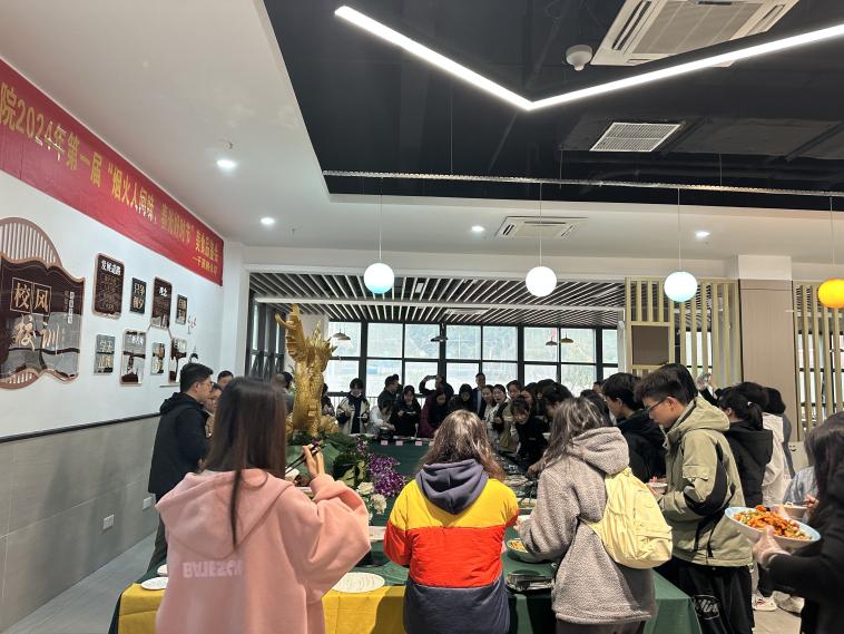 3月12日,taptap点点美食品鉴会在食堂二楼“浓香”开启,一道道美食陆续上桌,精致可口的糕点、麻辣鲜香的碗碗菜、香气诱人的特色小吃、健康养生的药膳汤……各类美食琳琅满目,近100名师生现场打卡,赞不绝口。