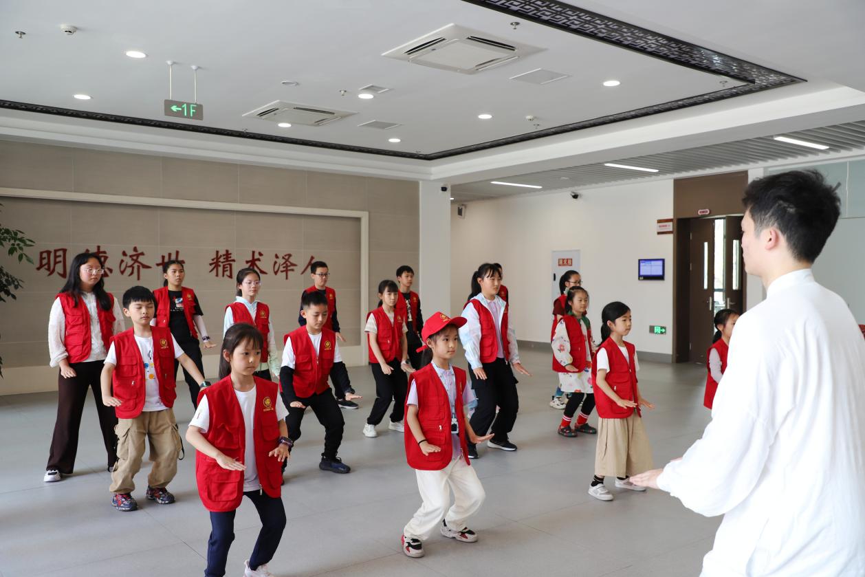 ▲小记者们学习八段锦基础动作