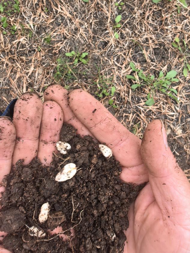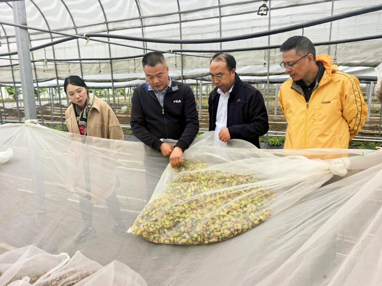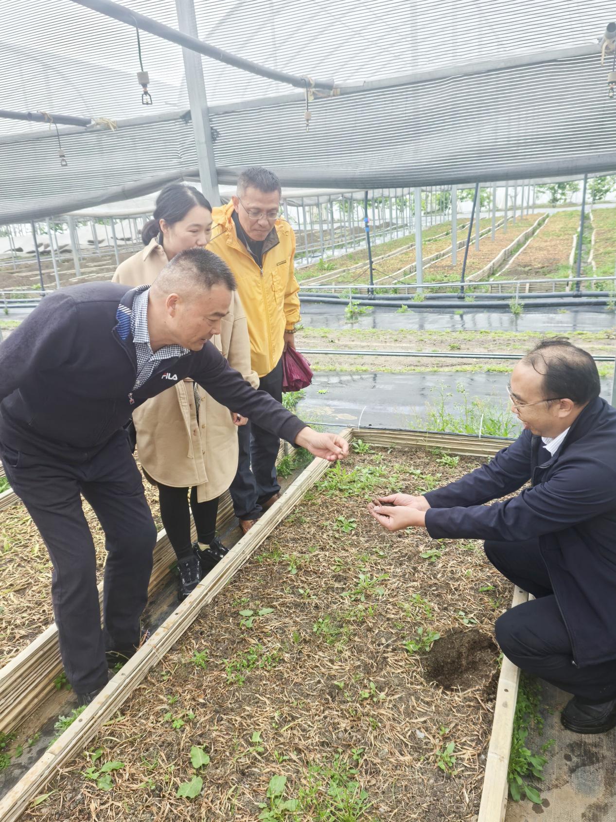 ▲学院有关部门负责人在种植基地了解太白川贝母育苗种植情况