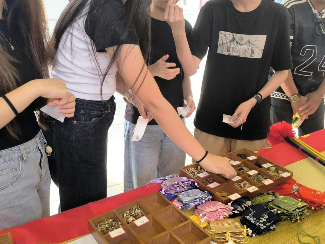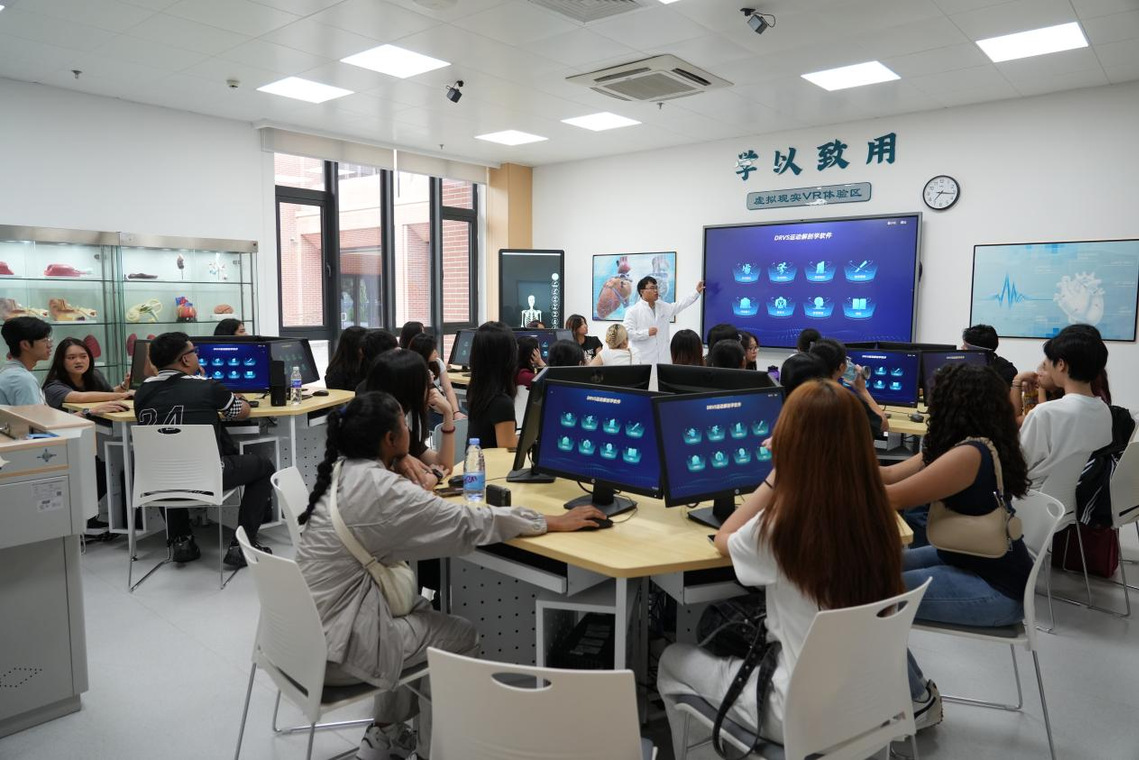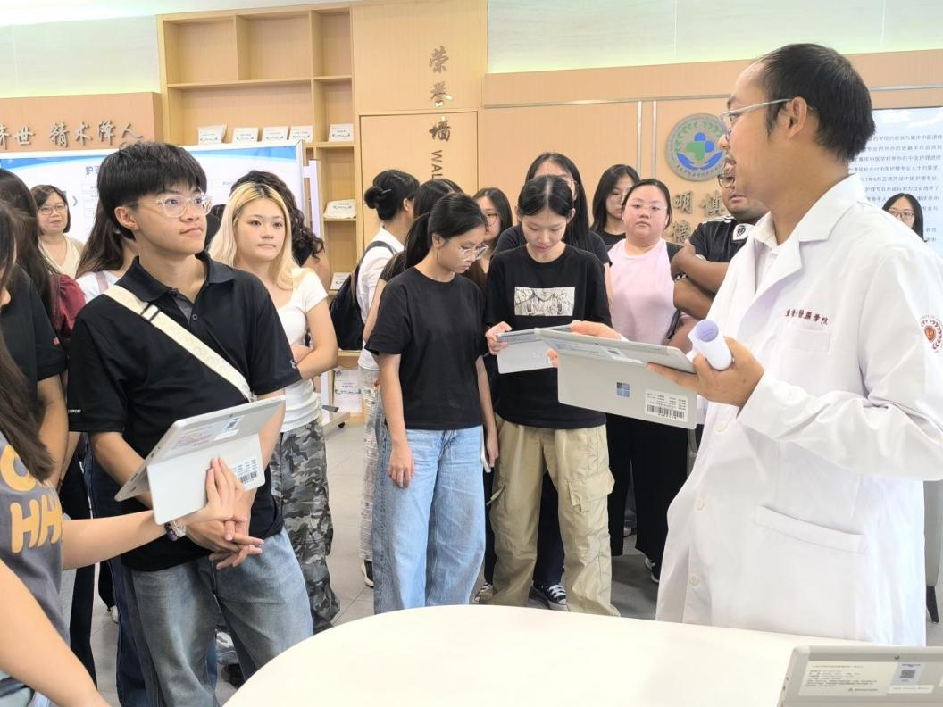 代表团参观了taptap点点基础医学院数字化解剖实验室、护理学院护理实训中心、中药资源展厅、中医药文化馆,还现场参与了taptap点点学生社团开展的香囊制作、扎染、漆扇制作等社团活动,沉浸式体验中医药文化魅力。
