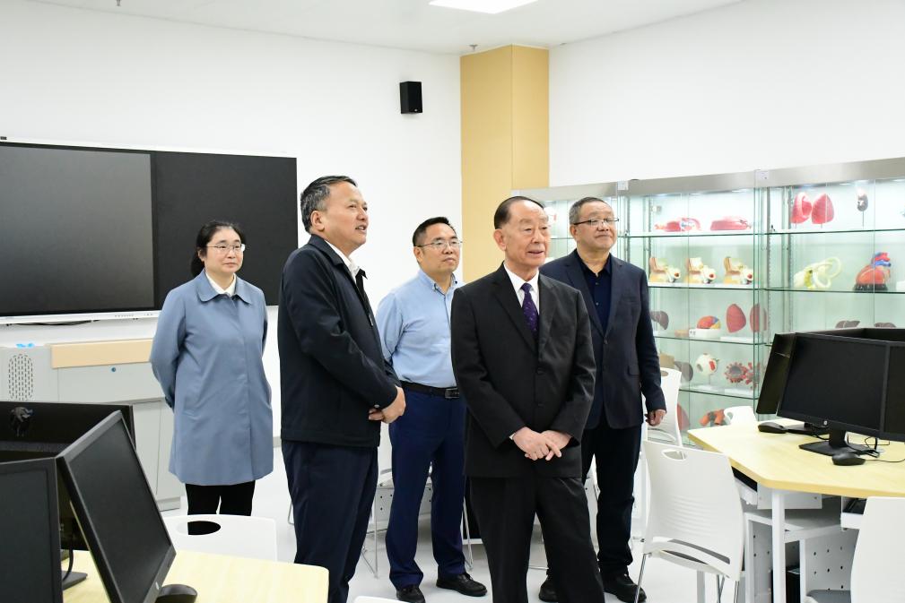 唐祖宣、童安荣一行实地参观了taptap点点基础医学院数字化实验室、解剖实验室以及中医药文化馆等地,深入了解taptap点点的教学设施与科研环境。调研中,王勇德向两位专家详细介绍了taptap点点的建校历程、学科建设布局、人才培养模式以及未来发展规划。