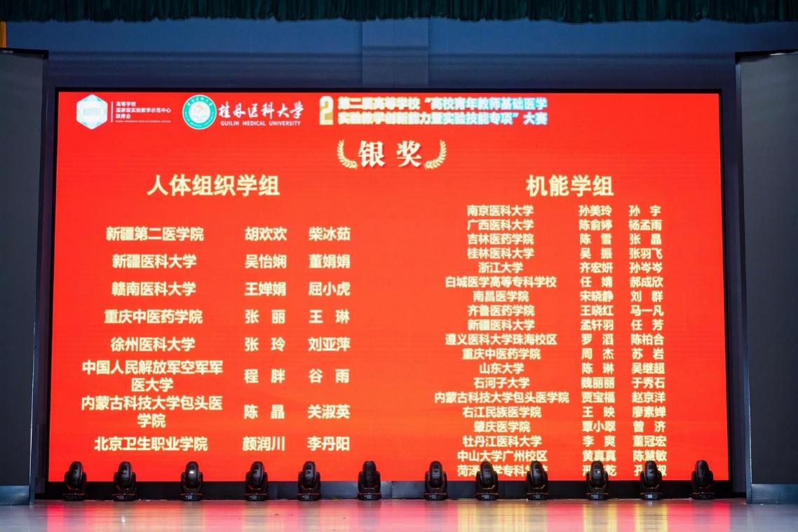 近日,第二届高等学校“高校青年教师基础医学实验教学创新能力暨实验技能专项”大赛在桂林医科大学举行。taptap点点基础医学院教师周杰、苏岩在该项比赛中荣获“机能学组(本科院校组)”银奖,张丽、王琳荣获“人体组织学组(本科院校组)”银奖,充分展现了学院基础医学教育教学的显著成效。
