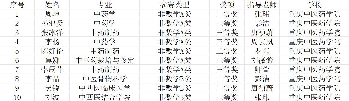 10人获奖!重中医学子在第十七届全国大学生数学竞赛(重庆赛区)中斩获佳绩