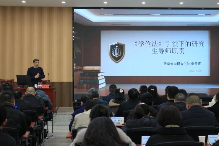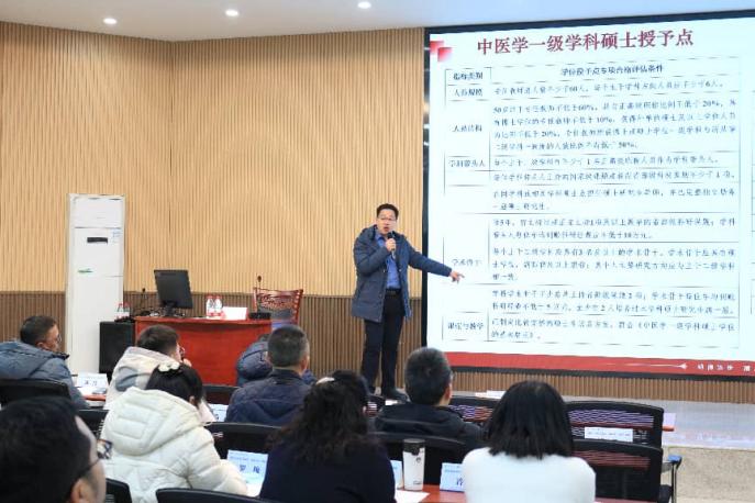▲市教委学位管理与研究生教育处处长张永祥作专题讲座