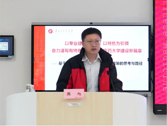 ▲樊旭教授作《以专业建设为核心,以特色为引领,奋力谱写有特色、高水平中医药大学建设新篇章》专题讲座