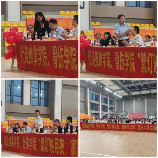 月是中秋明,情是中秋浓。适逢中秋、国庆双节来临之际,为庆祝中华人民共和国成立74周年,培养大学新生以爱国主义为核心的民族精神,打造温馨又充满活力的校园氛围,针灸推拿学院、骨伤学院全体师生于9月26日晚在校体育馆举行了“繁灯映月夜,家国庆华年”迎中秋、庆国庆联欢晚会。